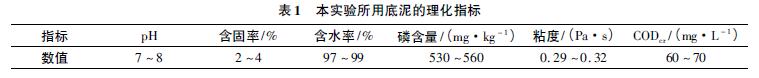 本實驗所用底泥取自武漢市洪山區巡司河湖北工業大學處河段,北緯N30°29'8.29″,東經E114°18'19.70″。所取底泥充分攪拌,并用10目的篩網篩除其所含樹棍及樹葉等,暫存備用。底泥的相關理化指標見表1。