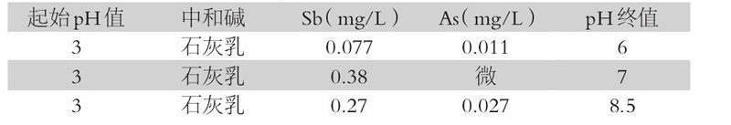 用NaOH調(diào)節(jié)廢水p H值, 并定量投加石灰的方法處理廢水。在p H為6-9范圍內(nèi), p H值對水溶液中銻砷去除的影響不大。